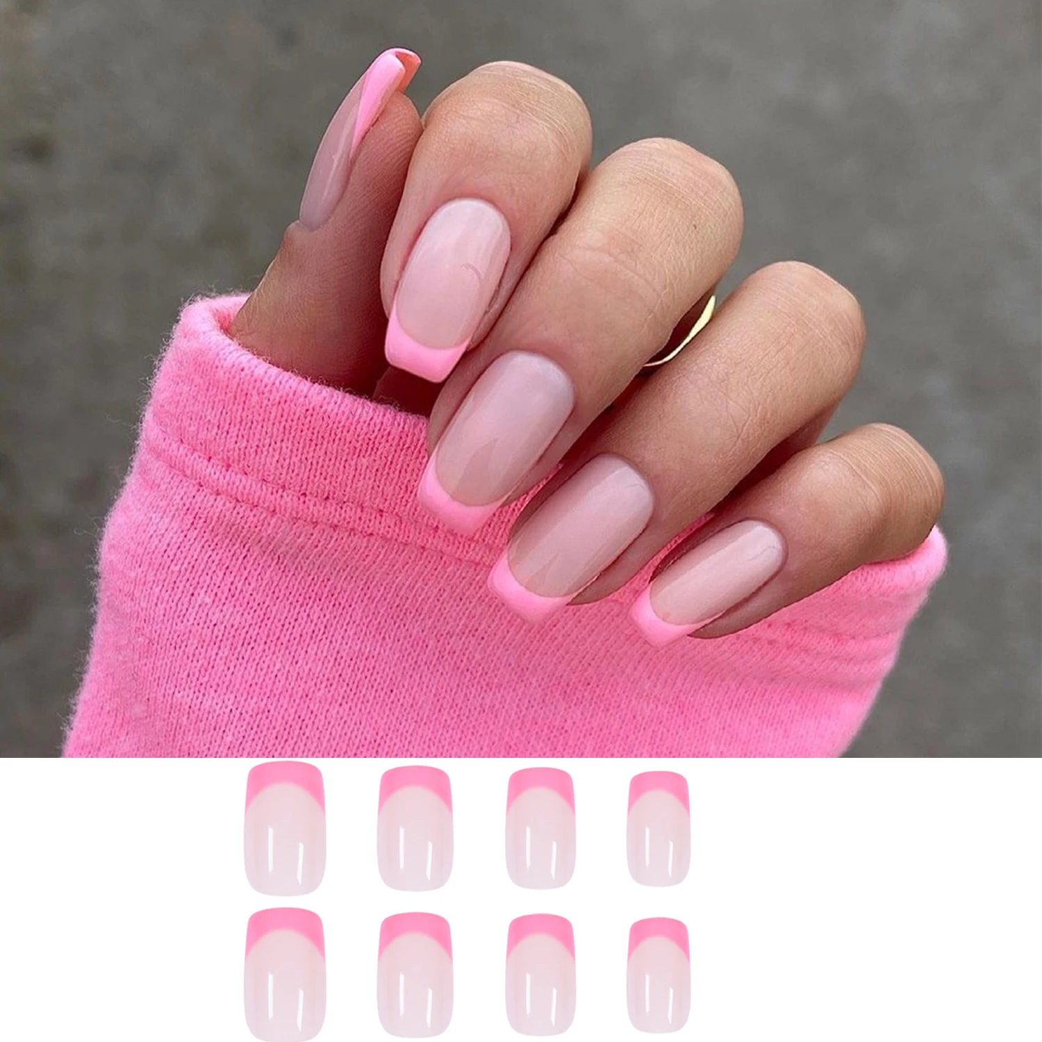 24 шт розовая линия французские накладные ногти короткая квадратная головка накладные ногти съемные полное покрытие ногти искусство советы нажмите на ногти с клеем