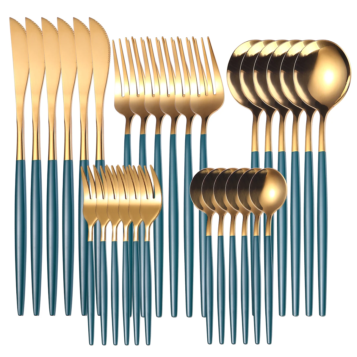 30 шт. цвета: золотистый, Нержавеющаясталь столовая посуда набор ст...