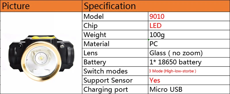 Вариант B:1 Фара + 2 аккумулятора 18650 + 1 зарядное устройство