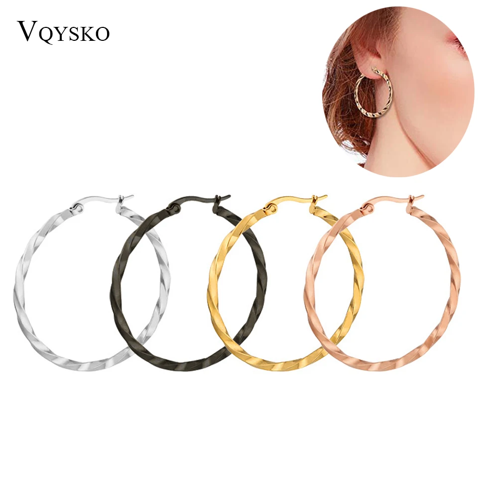 Модные женские витые круглые серьги-обруч из нержавеющей стали, элегантные кольца для ушей, свадебные ювелирные изделия, разные размеры