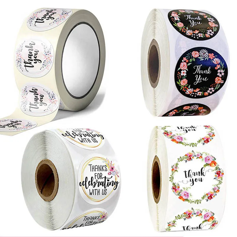 500 шт.рулон Спасибо наклейки Цветочный принт уплотнения бумажные наклейки для украшения ручной работы, для упаковки ювелирных изделий, украшения свадебный подарок этикетки