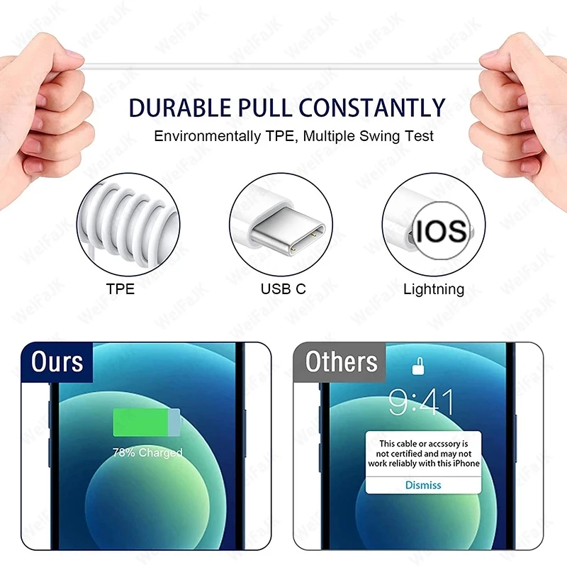 11M 2M 18W Usb C To Lighting Charging Cable Fast Charger