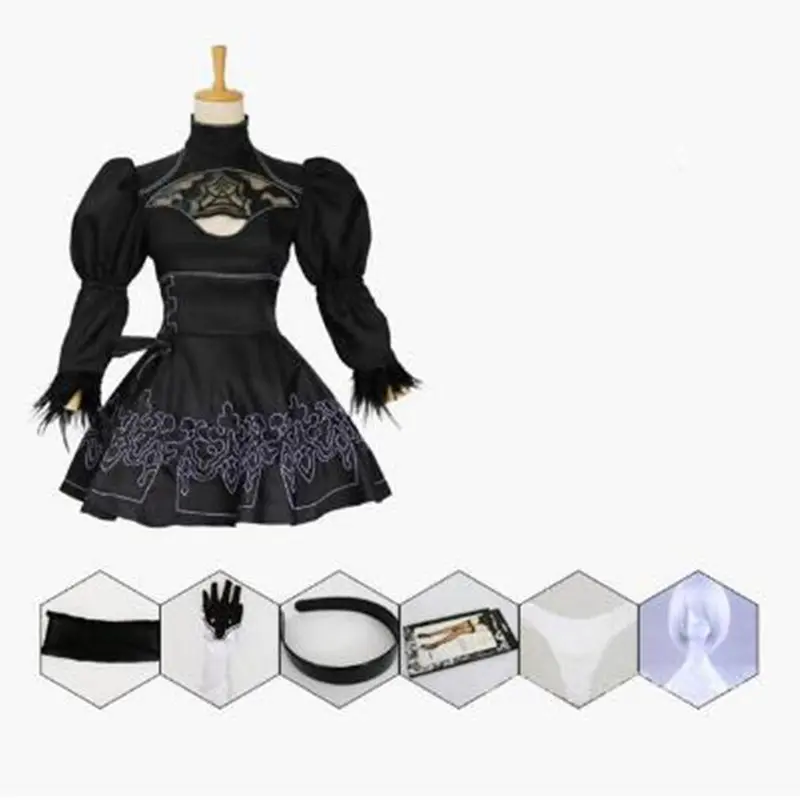 Костюм для Хэллоуина Nier Automata, тип A, 2B, костюм для косплея, аниме, женский наряд, Маскировочный костюм, вечерние черное платье + парик