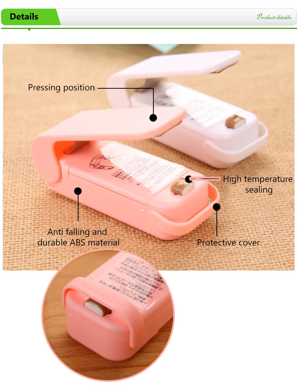 Портативная термоупаковочная машина, пластиковая упаковка, зажим для хранения, мини запайки, удобная наклейка для еды, закуски, кухонные гаджеты