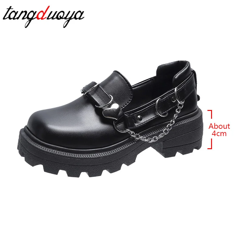 Школьная обувь в японском стиле, черные, коричневые туфли на платфо...