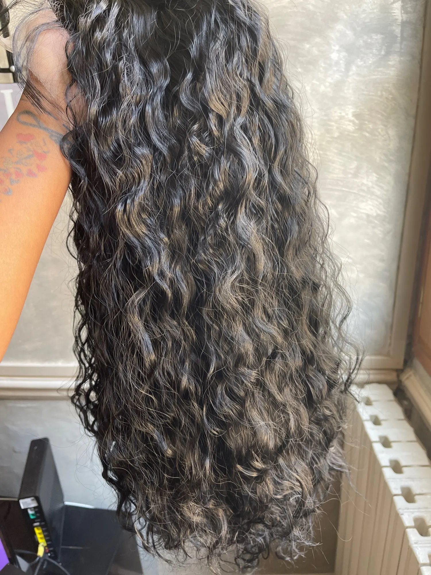 Парик длинный черный кудрявый Женский, плотность 180%, 26 дюймов