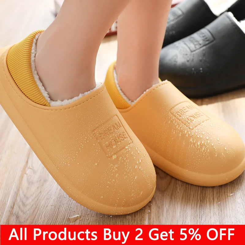 2022 Водонепроницаемые зимние домашние тапочки, женская теплая плюшевая обувь на толстой подошве, модная уличная мужская домашняя обувь, хлопковая обувь для пар