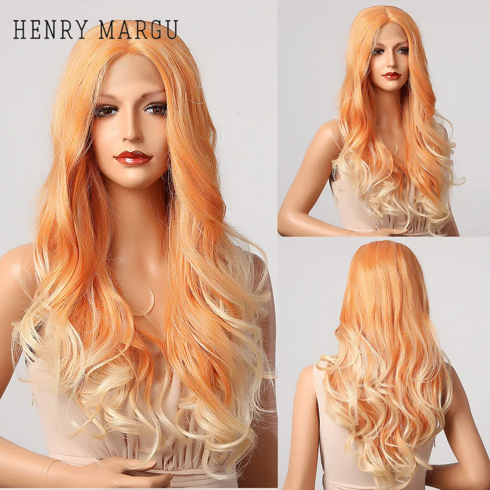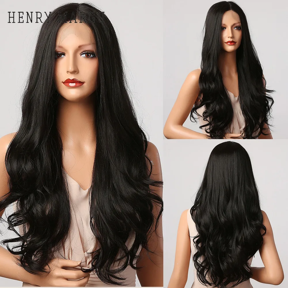 Генри MARGU синтетический Синтетические волосы на кружеве парик Длинные волны синтетические парики шнурка коричневый часть термостойкие парики из натуральных волос Для чернокожих Для женщин Косплэй