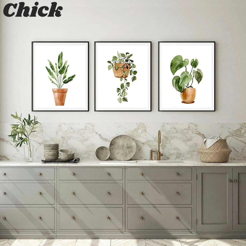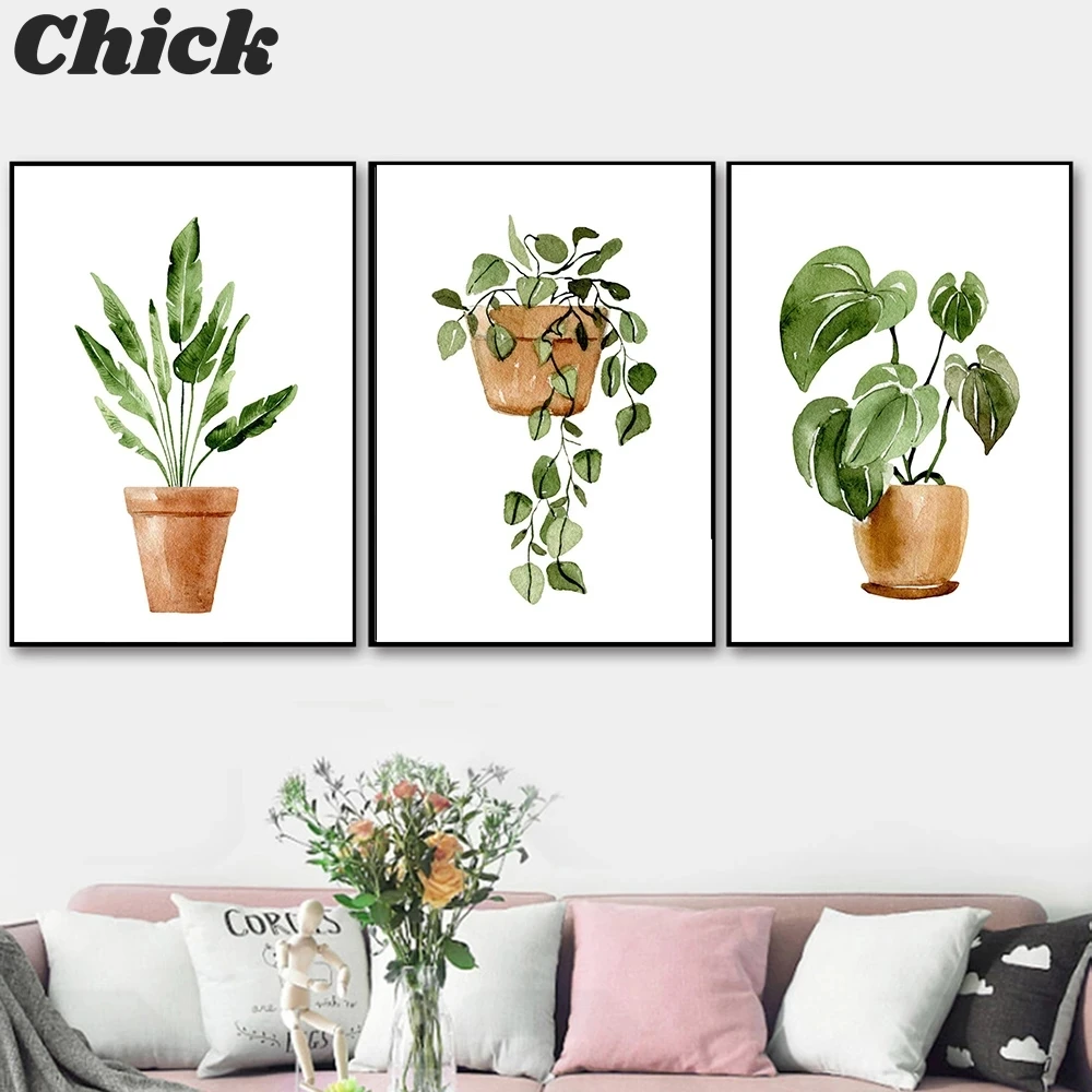 Настенные картины с зелеными растениями в простом стиле, тропические декоративные холщовые постеры для украшения гостиной