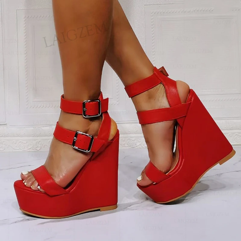SEIIHEM/женские туфли-лодочки на платформе; Босоножки с ремешком и пряжкой; Женская обувь из искусственной кожи с открытым носком; Женская обувь; Большие размеры 42, 46, 47, 52