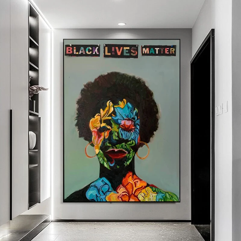 Настенная Картина на холсте с изображением абстрактной женщины BLACK LIVES, портреты и принты, картина для домашнего интерьера