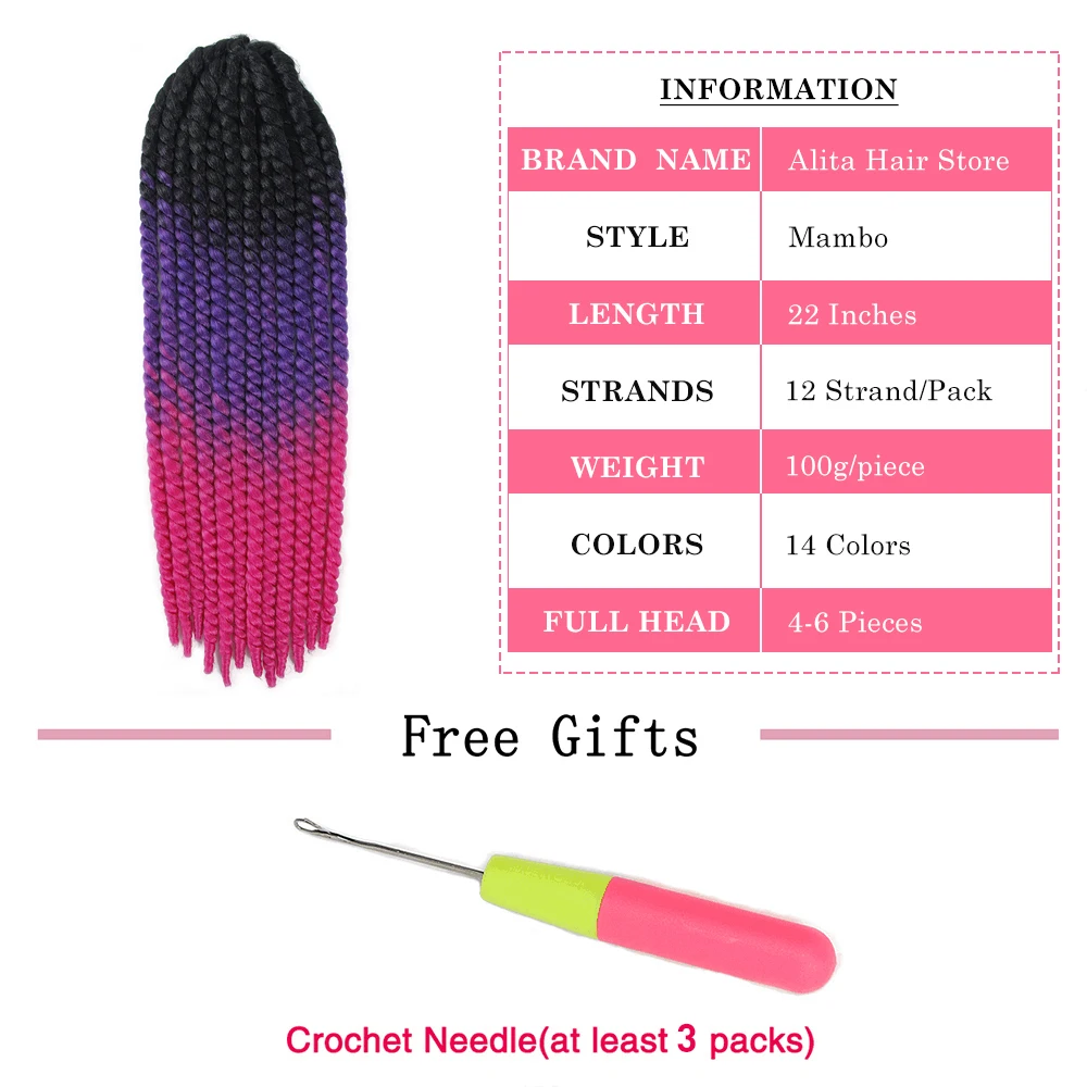 Mambo твист волосы Джамбо крючком косы 22 дюйма 120 г цвет Омбре синтетические волосы крючком плетение волос Кудрявые концы косы красные волосы