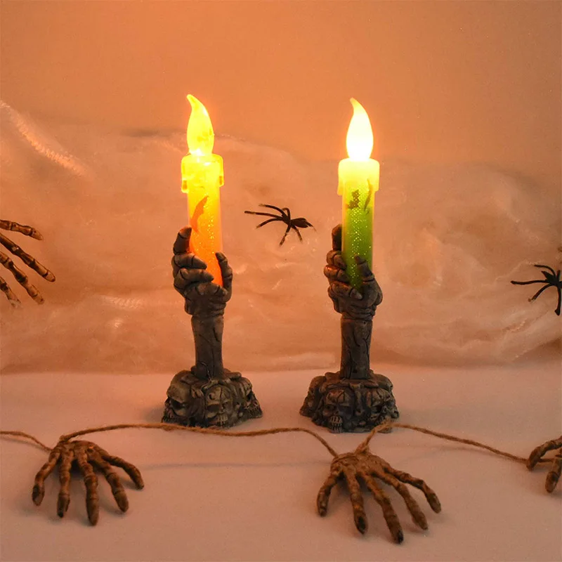 Хэллоуин ужас череп ручная свеча светодиодный светильник пластиковый светильник украшение на Хэллоуин событие вечеривечерние реквизит беспламенная Свеча лампа