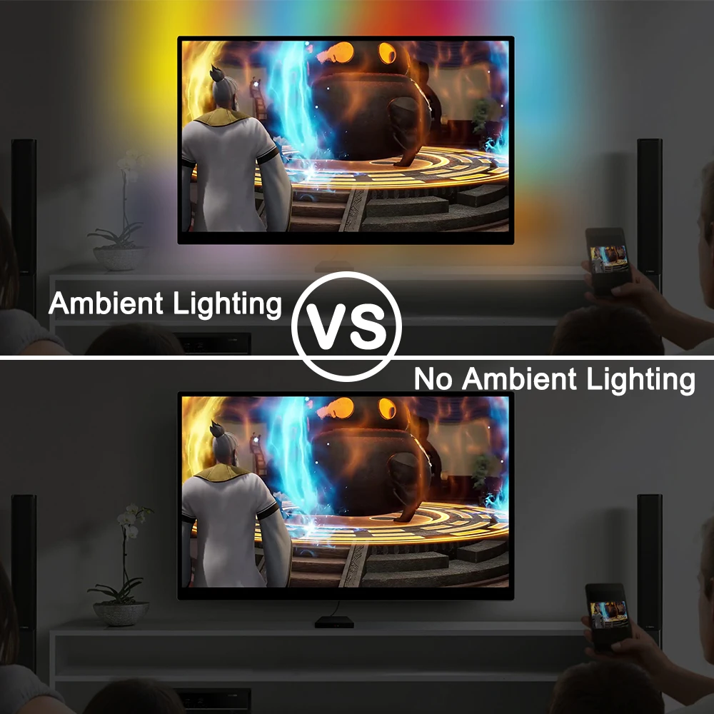 Примечание: он работает только на Android TV, Samsung/LG не относится к операционной системе Android.Если вы хотите использовать его с smart TV, вы должны сначала подключить дополнительный Android TV box к телевизору, затем можно использовать с нашим продуктом.Светодиодная лента работает правильно только после установки и установки на телевизор или компьютер. Если у вас есть какие-либо проблемы, свяжитесь с нами, чтобы проверить их для вас.