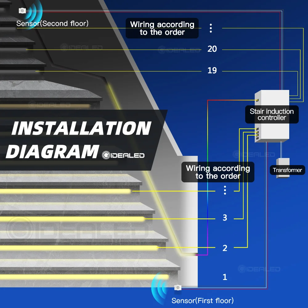 2-2 провода, теплые белые/холодные полосы света, используются в 1-36 каналах внутри лестницы.