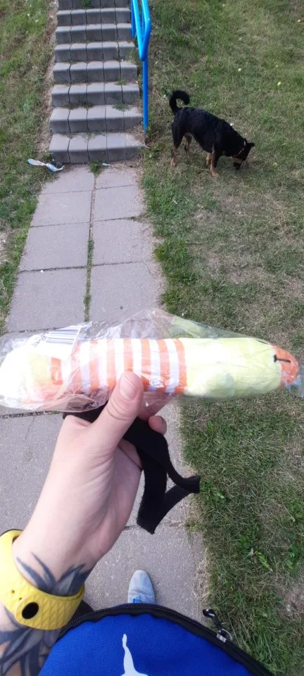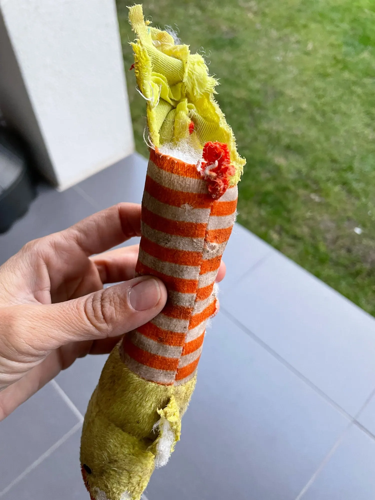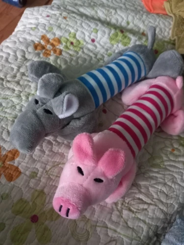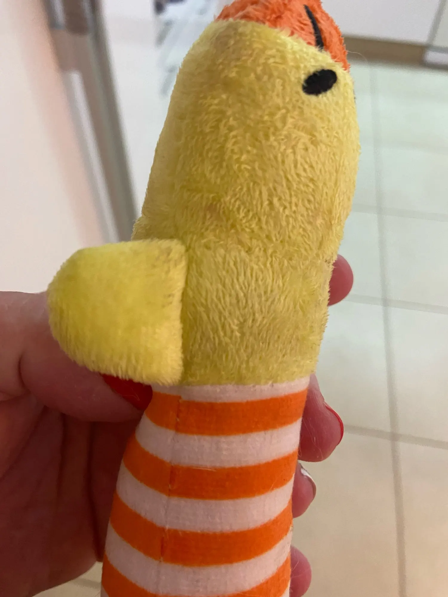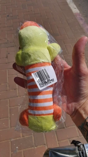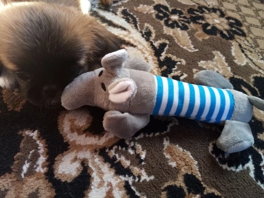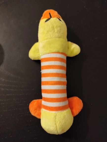 Очень упоротая утка. Во-первых, не работает пищалка. Во-вторых, не слишком прочная. Наш 3х месячный корги отодрал лапу за вечер. Остальное пока держится, но больше за счёт того, что у него много других игрушек
