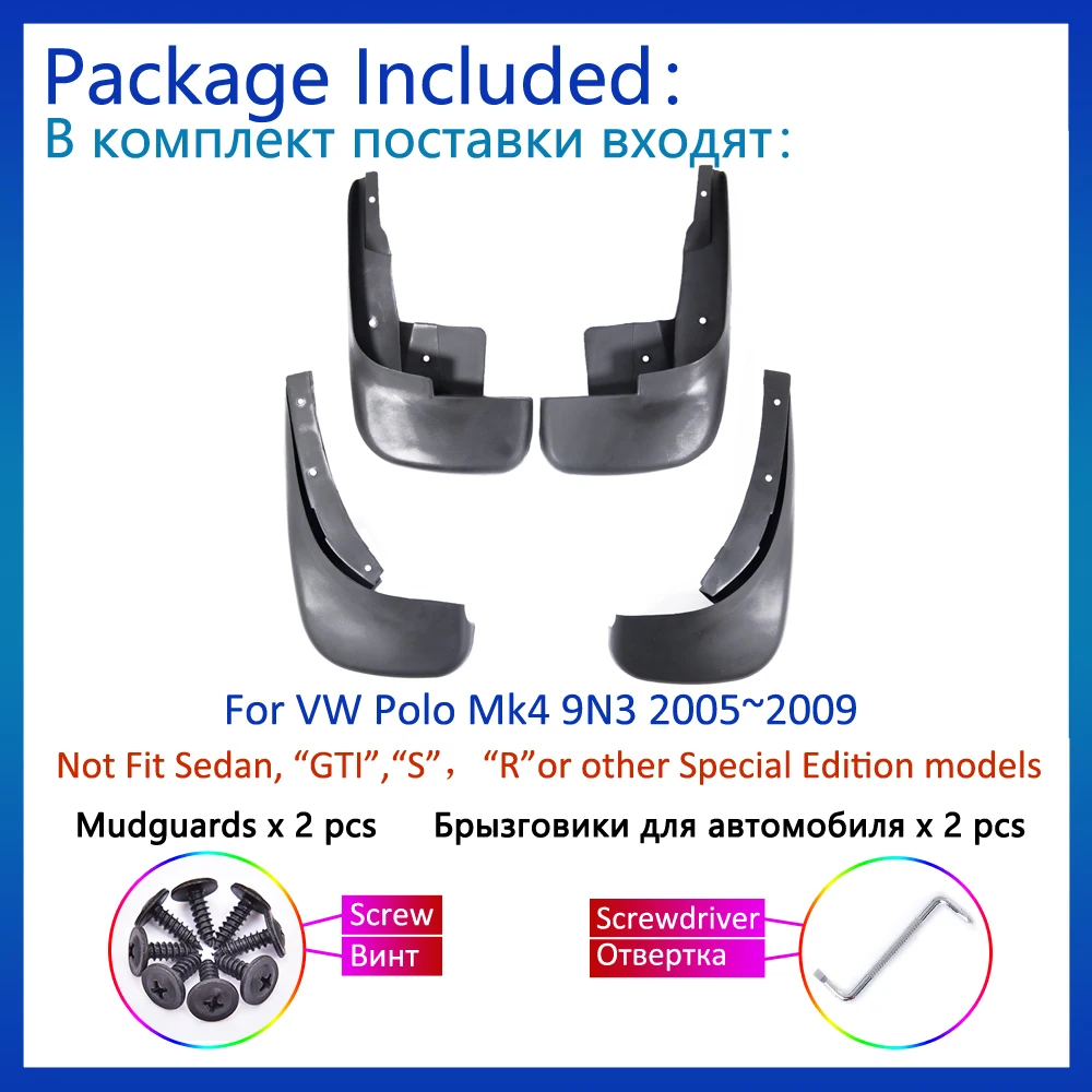 Для VW Polo Mk4 9N3 2005 ~ 2009, автомобильный брызговик 4x крыло брызговиков, аксессуары для стайлинга, новое обновление, брызговик, защита от брызг 2005 2006 2007 2008 2009