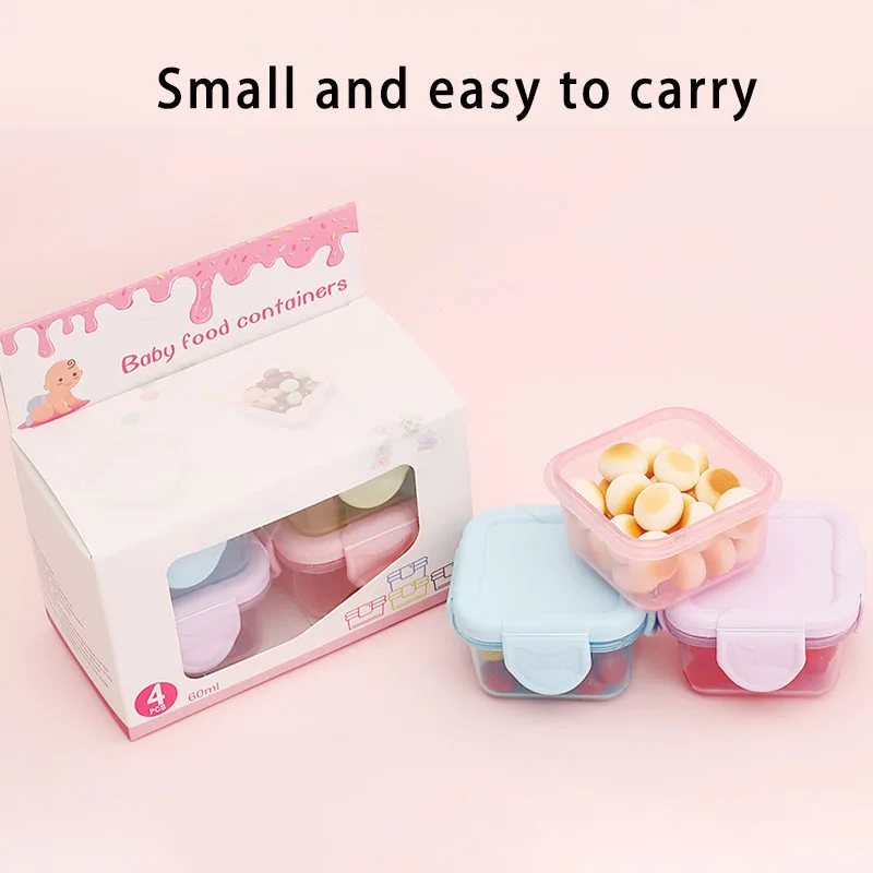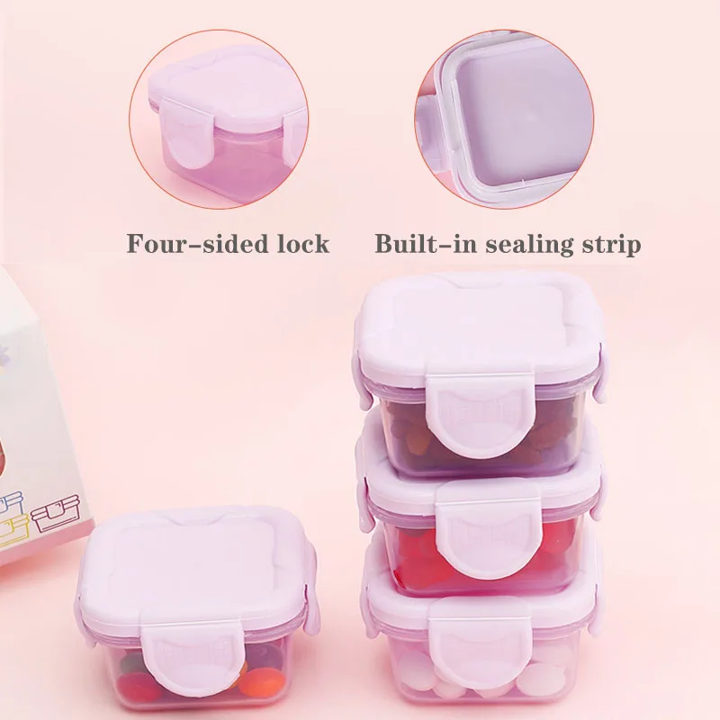 4 шт.компл. PP кухонная герметичная коробка, контейнер для закусок, портативный контейнер для хранения продуктов, мини квадратная коробка для сохранения свежести 60 мл