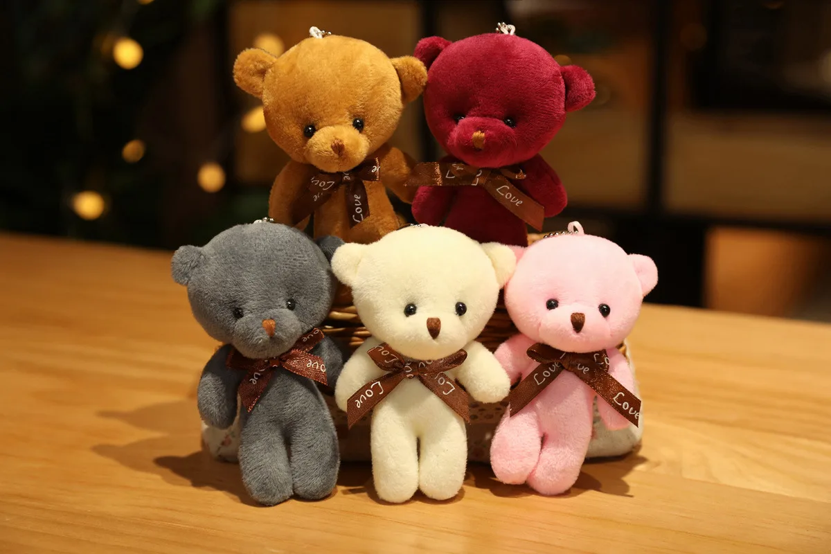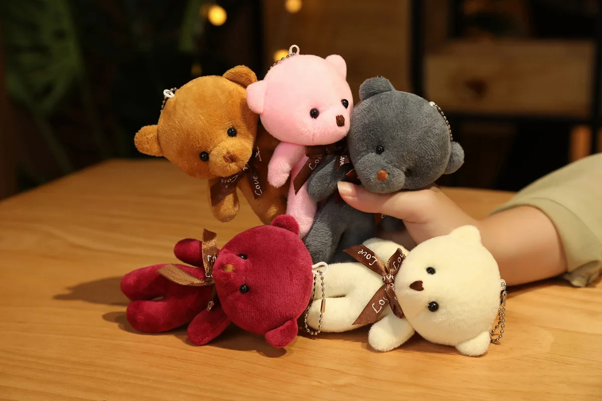 12 см случайный цвет кавайная любовь плюшевый мишка плюшевые игрушки милый мини Галстук Мишка куклы сумка брелок кулоны куклы хороший подарок для девочек