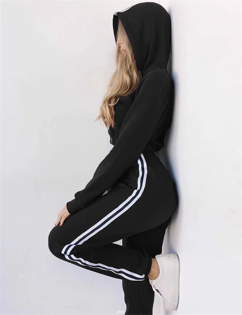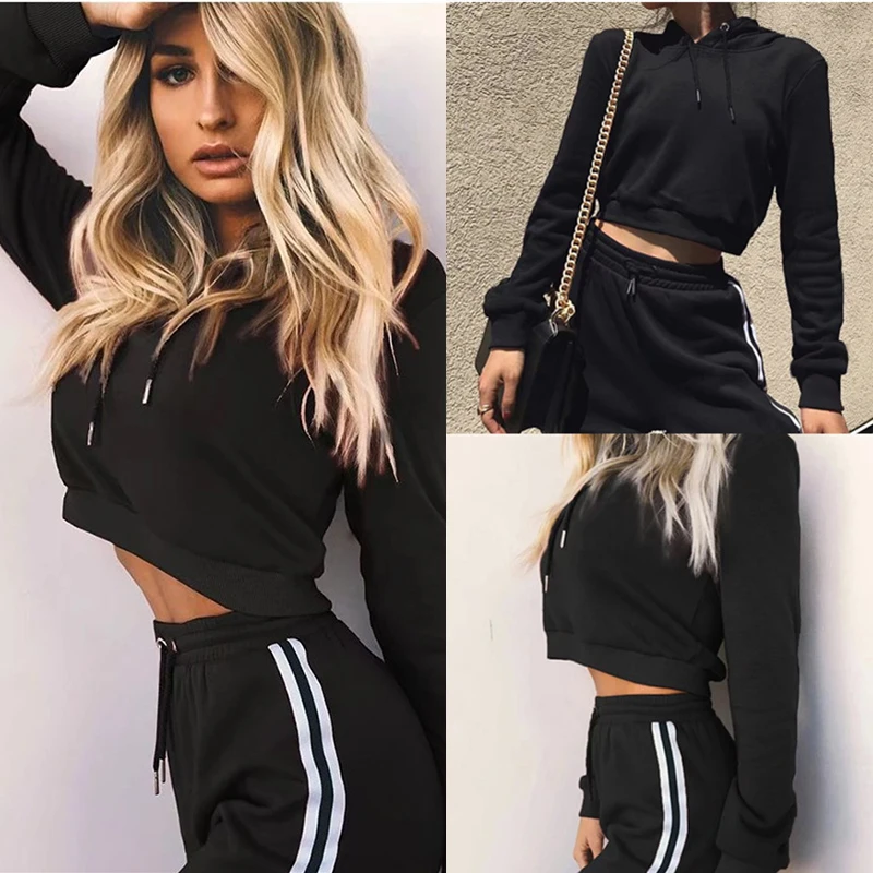 Vrouwen/комплект из 2 предметов; Тренировочный костюм; Толстовка с капюшоном; Vrouw Kleren; Спортивные костюмы; Укороченный топ с принтом + Боковая полоска; Одежда