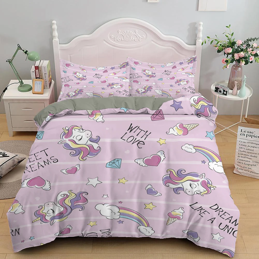 Детское постельное белье с изображением единорога миннимаус для девочек пододеяльник постельное белье Twin полный Король, королева Размеры Стёганое одеяло покрывало