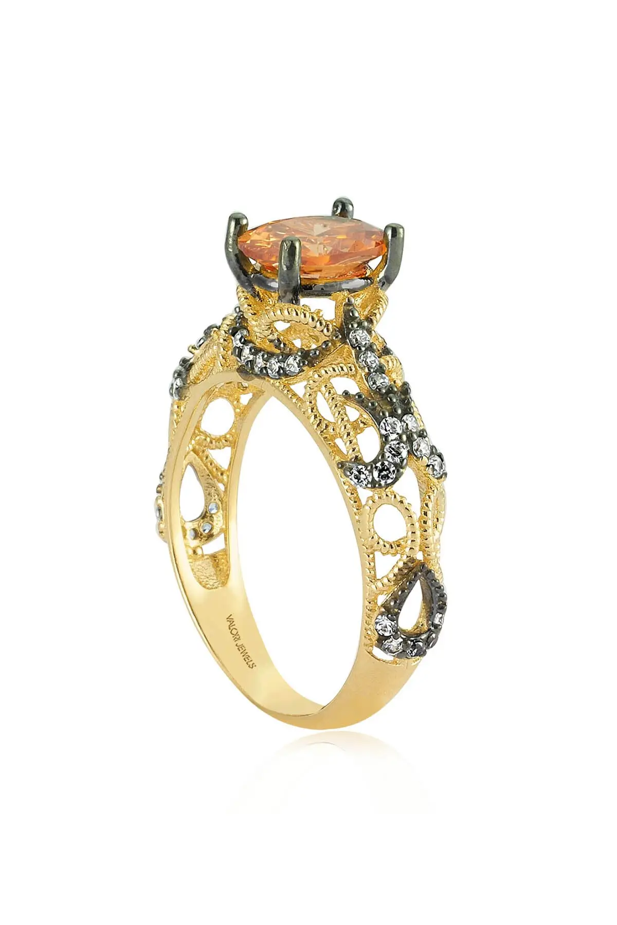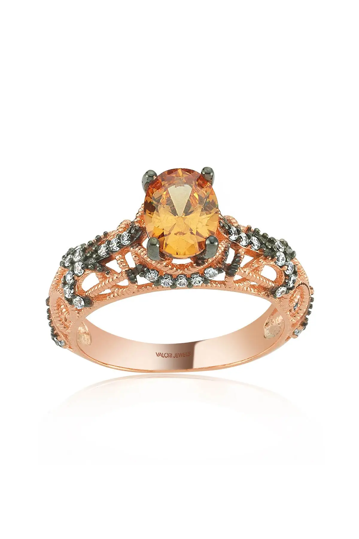 Valori Драгоценности 1 карат, цирконий цвета шампанского овальный камень, цвет золотистый, серебристый Tektash кольцо ZPYZ104-GSP
