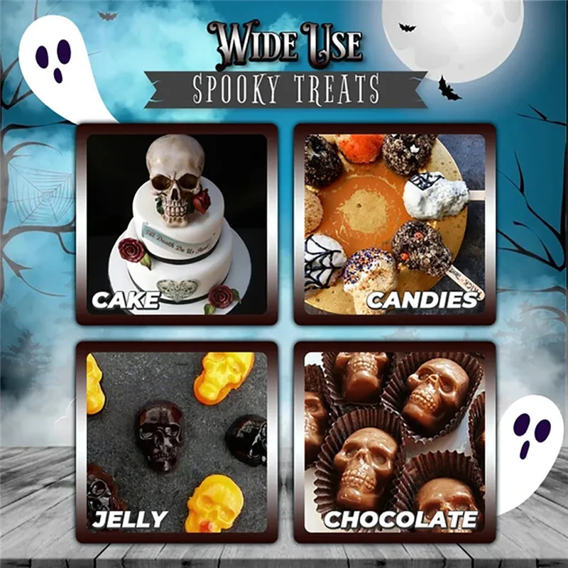 Эта форма для изготовления черепа может быть широко использована для Хэллоуина, Дня благодарения, рождественских вечеринок, баров, дней рождения, новогодних вечеринок и т. д.