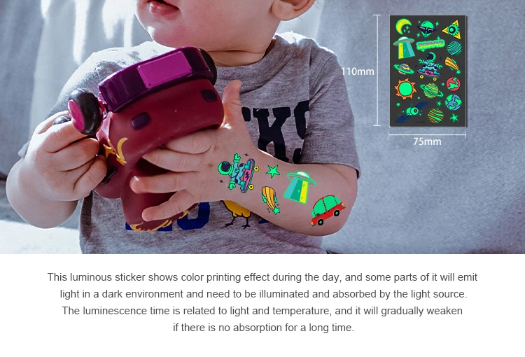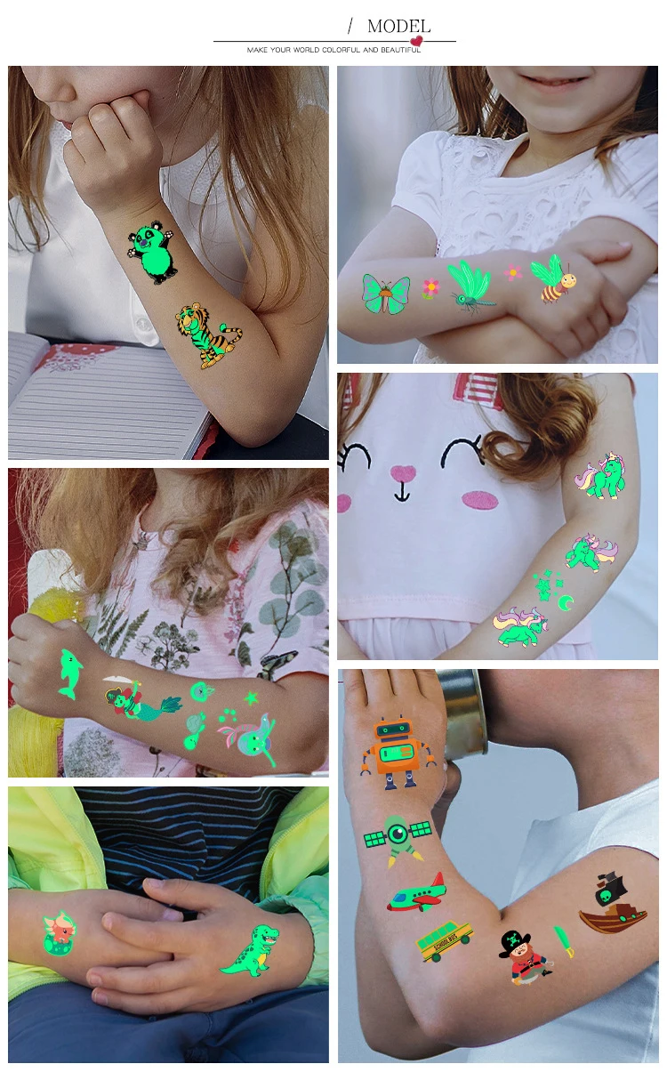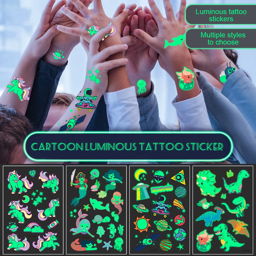 1 шт. светящаяся наклейка на татуировку для детей, светящаяся рука для лица, детское боди-арт, тату с динозавром, пиратом, единорогом, русалочкой, Мультяшные наклейки