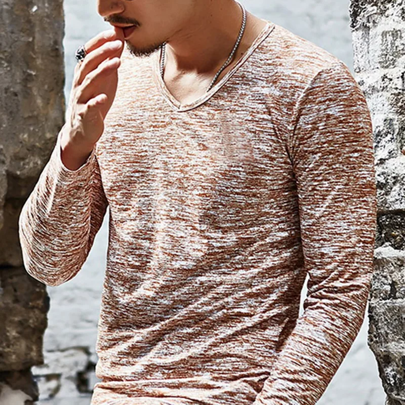 Однотонная одежда, Весенняя мягкая эластичная хлопковая футболка, Мужская футболка, модная футболка с длинным рукавом, Мужской Топ большого размера 2021