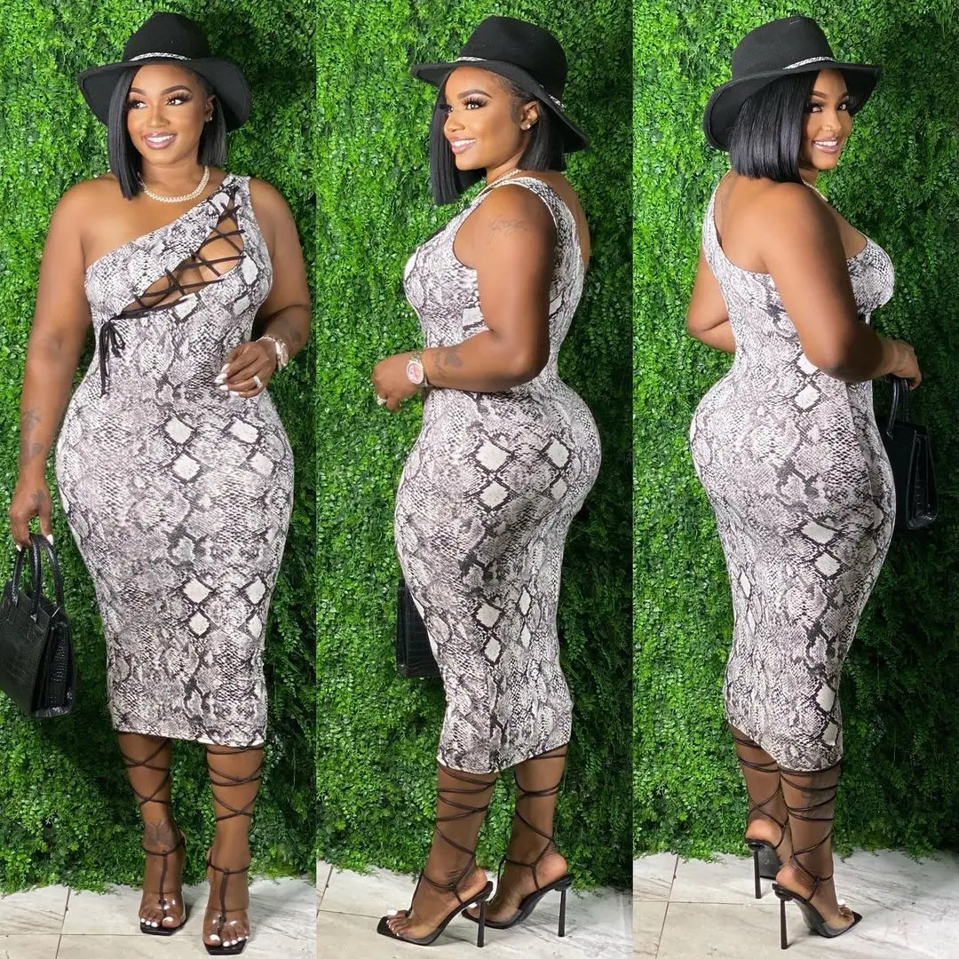Женское винтажное платье с леопардовым принтом Bodcycon, облегающее платье на одно плечо без рукавов размера плюс 4XL