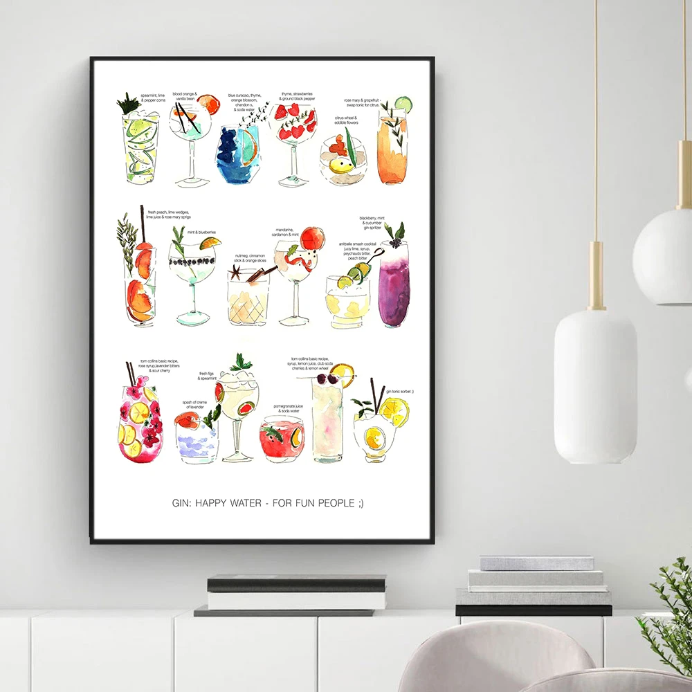 Кулинарные травы, Джин Мохито, художественная живопись, Мартини, тоник, Сангрия, плакаты, печать, цитаты, Steps, кухня, бар, искусство