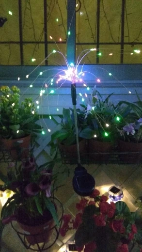 Когда я увидел его ночью, свет и цвета напоминали мне о инопланетяне. Свет достаточно яркий, чтобы освещать тротуар, мы купили цветы около двух недель назад, и до сих пор они загораются каждую ночь без проблем с яркими цветами. Несколько часов солнечного света достаточно для свечения в течение 6-7 часов.