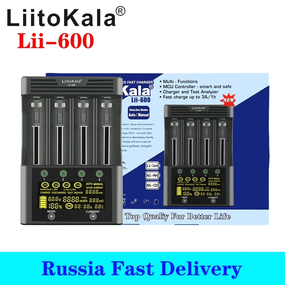 Зарядное устройство LiitoKala Lii-600, для батарей Li-Ion 3,7 В, NiMh 1,2 В, 18650, 26650, 21700, 26700, AAAAA, адаптер на 12 В, 5 А