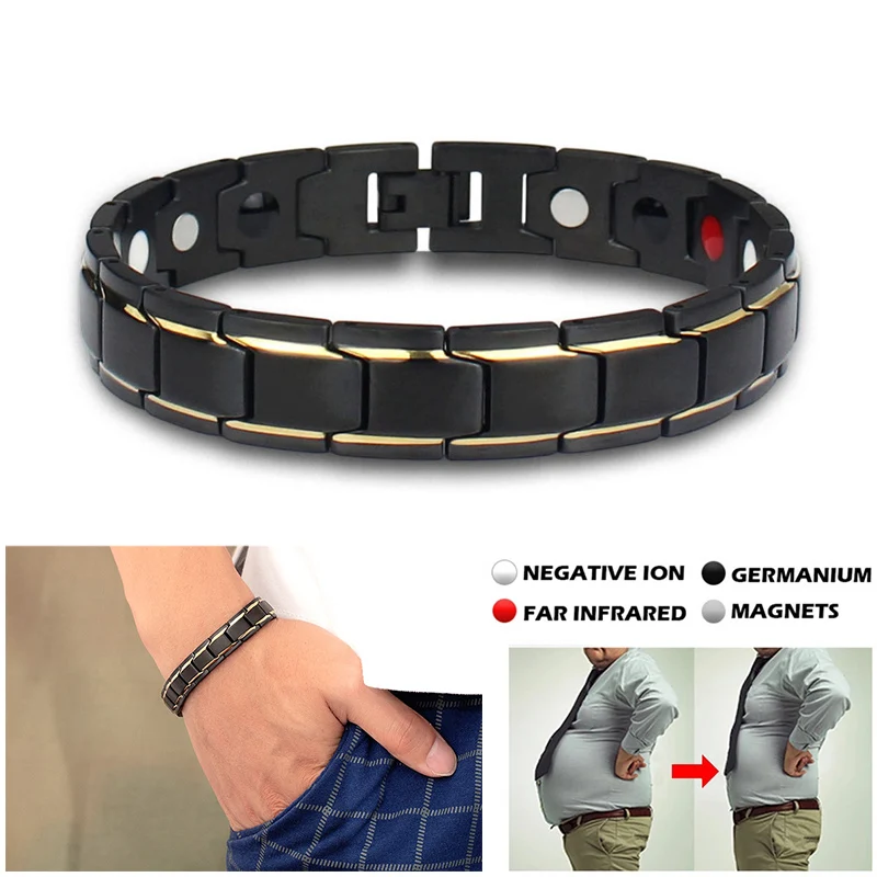 Магнитный медицинский браслет для мужчин и женщин, черные браслеты из титановой стали для электротерапии 4 в 1, магниты, отрицательные ионы, германий, оптовая продажа