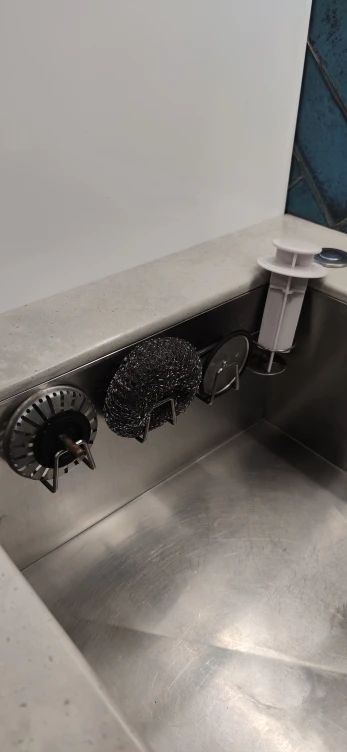 Прилепил в раковине на керамогранит, уже с месяц держится. Жена довольна, теперь губка на месте.