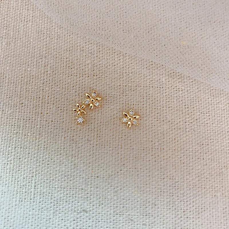 Элегантные серьги QMCOCO серебряного цвета с цирконом и цветами, корейские нежные асимметричные серьги для девочек, украшения для ушей на день рождения