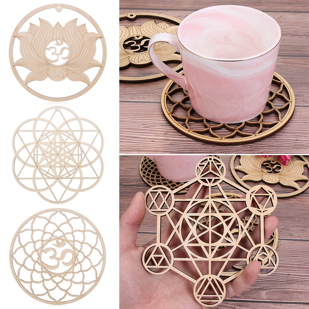 2 шт. деревянные цветок жизни энергии коврик ломтик деревянное осно...