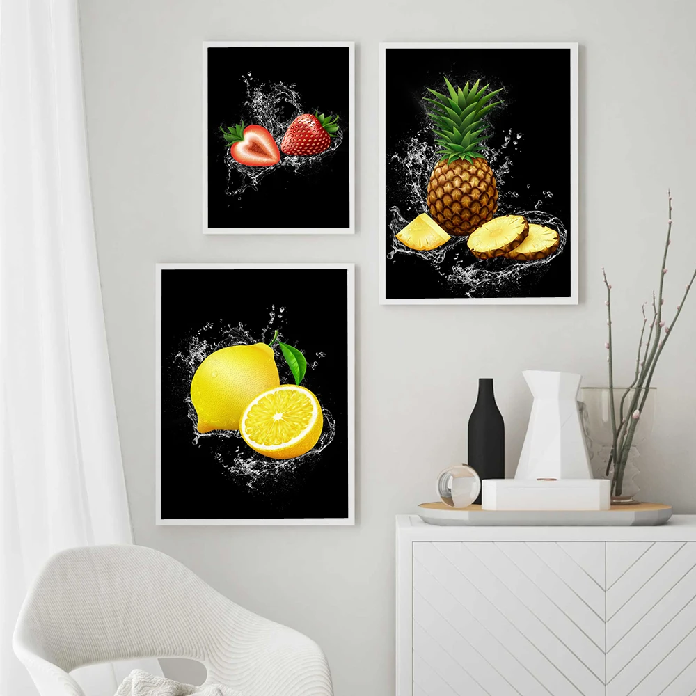 Современные художественные постеры на холсте с изображением фруктов, клубники, лимона, апельсина, ананаса, постеры с рисунком для кухни, столовой, домашний декор