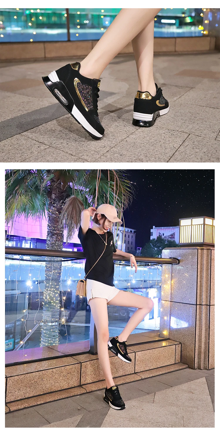 Кроссовки женские на шнуровке, плоская Вулканизированная подошва, блестящие, Повседневная модная обувь на платформе, большие размеры, на осень