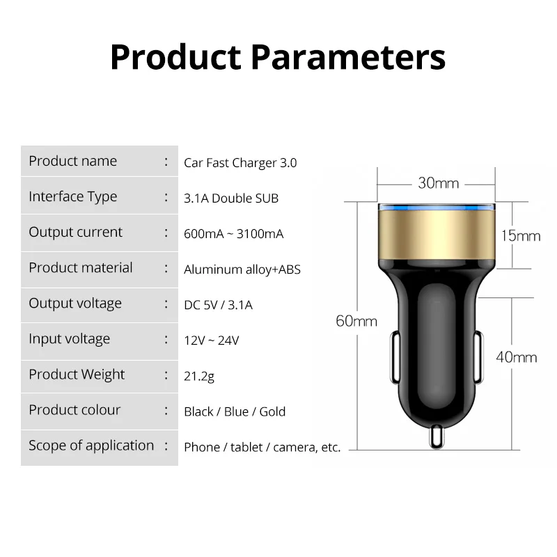 1 шт., автомобильное зарядное устройство с двумя USB-портами, 15 Вт