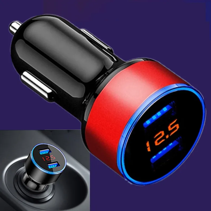Автомобильное зарядное устройство с 2 USB-портами, быстрая зарядка, светодиодный дисплей 3,0, автомобильный прикуриватель для iPhone 12, 11, Samsung, Huawei, Xiaomi Poco X3