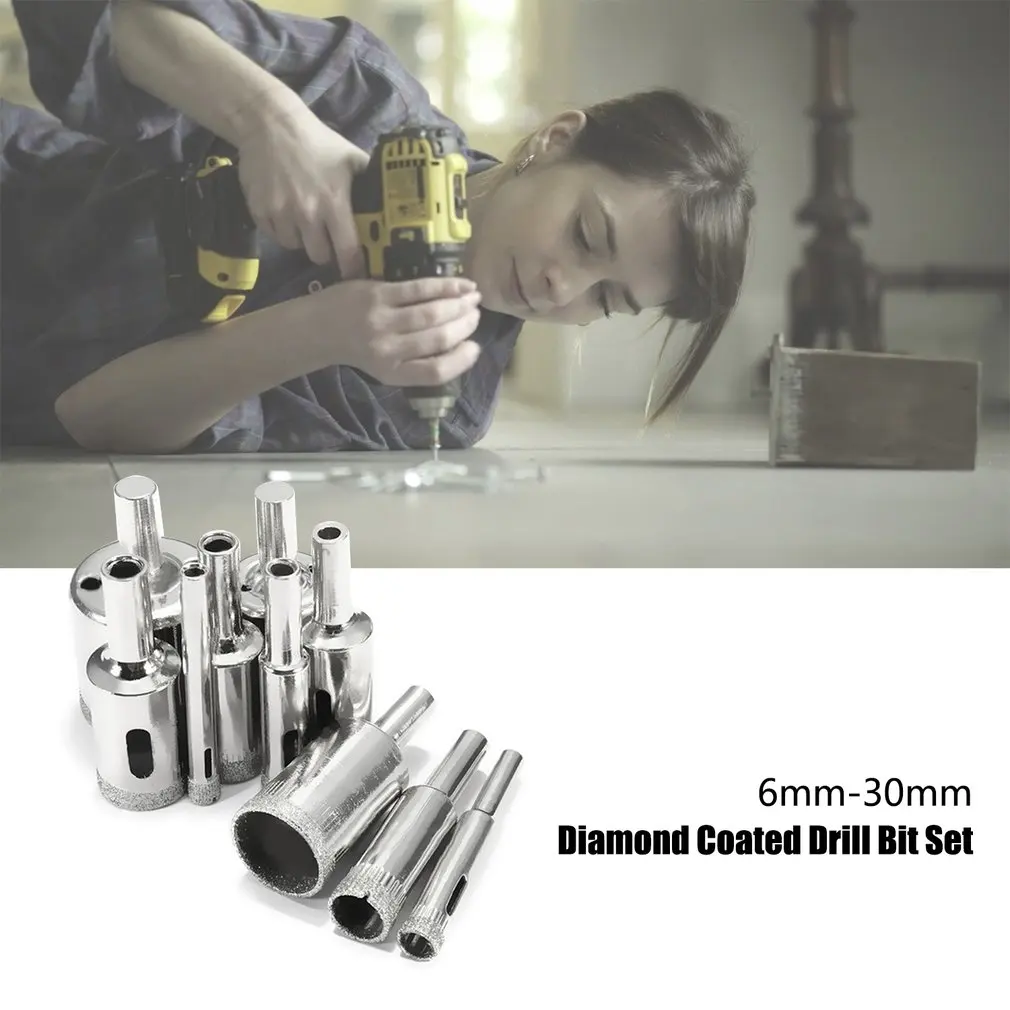 Набор сверл с алмазным покрытием, набор из 10 насадок для сверления отверстий под мрамор, стекло, керамику, для электроинструментов, гаечных ключей, торцевых втулок