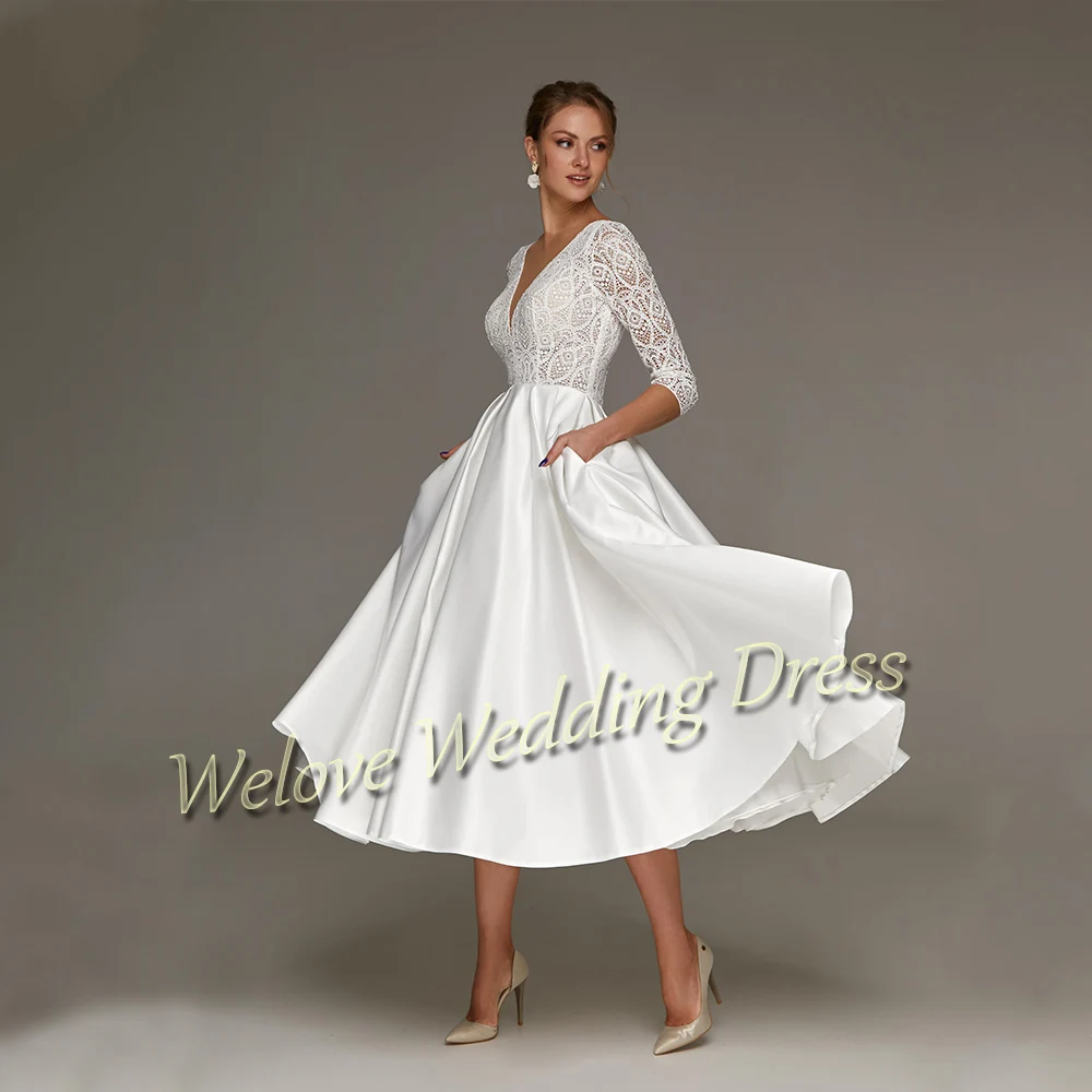 Женское короткое обручальное платье до щиколотки, а-силуэт