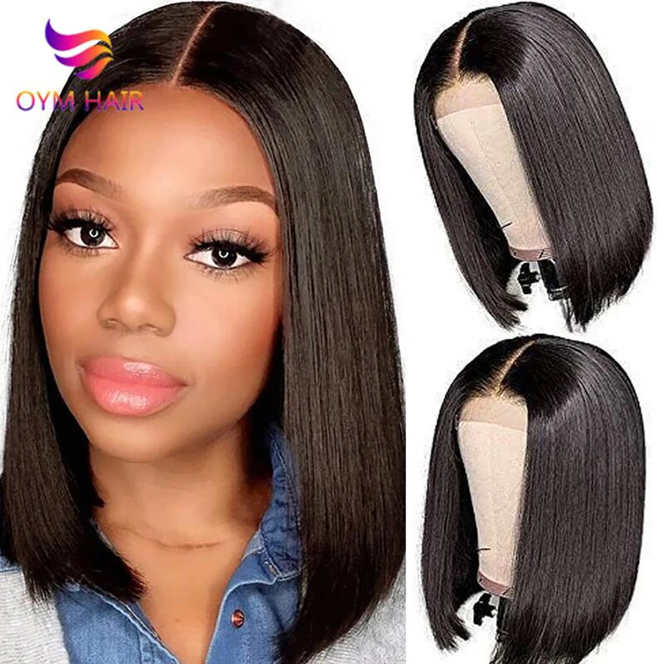 Парик 180 плотности, бразильский парик на сетке спереди, парики из человеческих волос, прямой парик Боб для женщин, парик на сетке Remy, Боб парики с детскими волосами