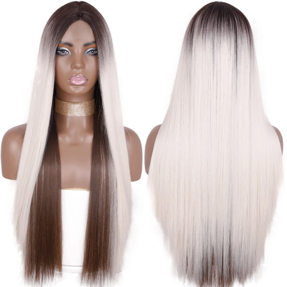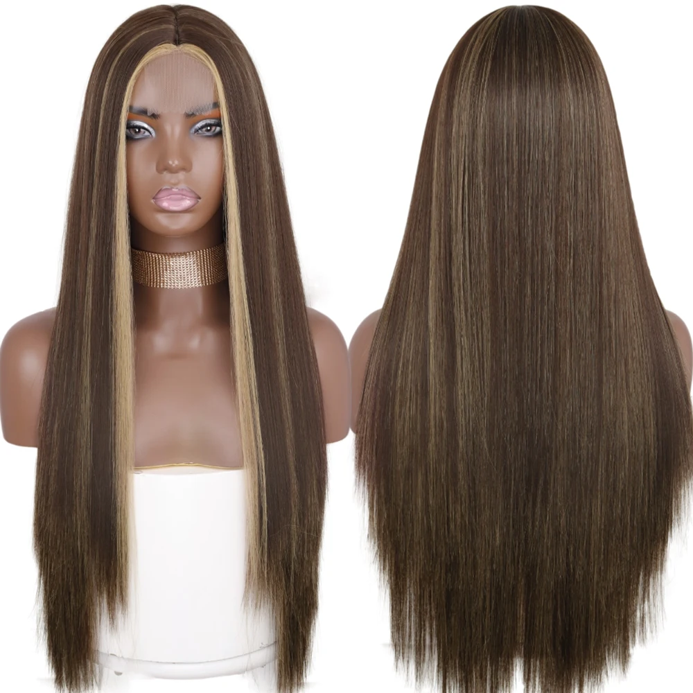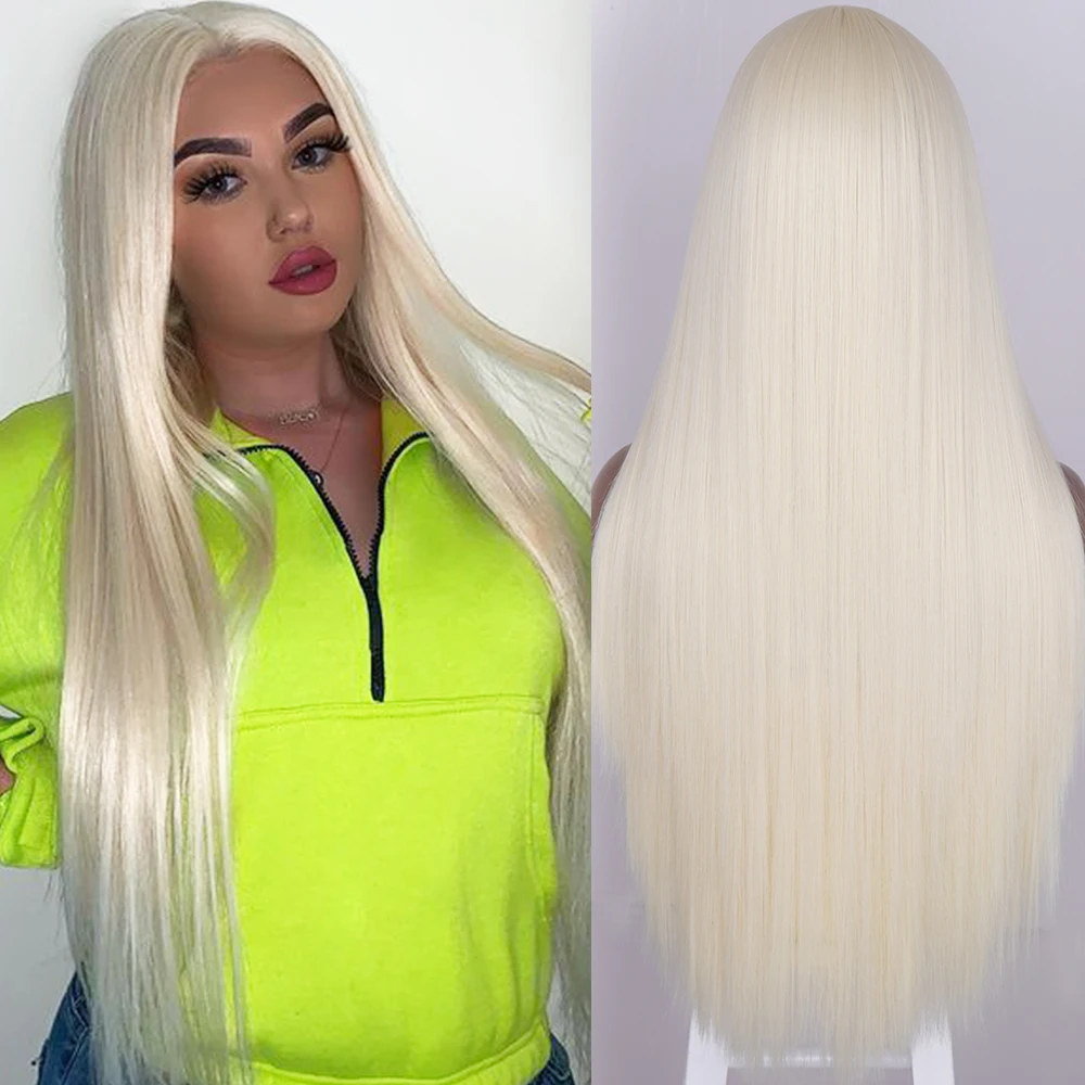 Синтетические длинные прямые светлые парики AZQUEEN для женщин, натуральный парик средней части для девочек, парик из термостойкого волокна с естественным внешним видом