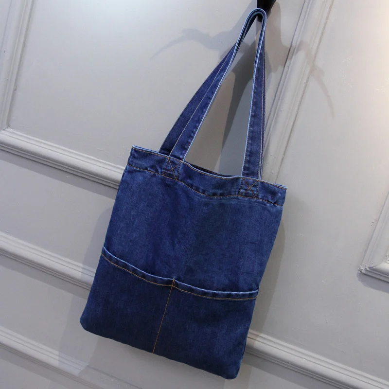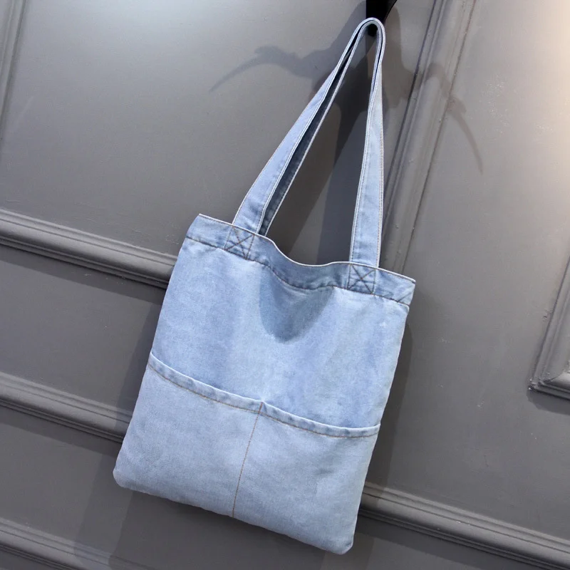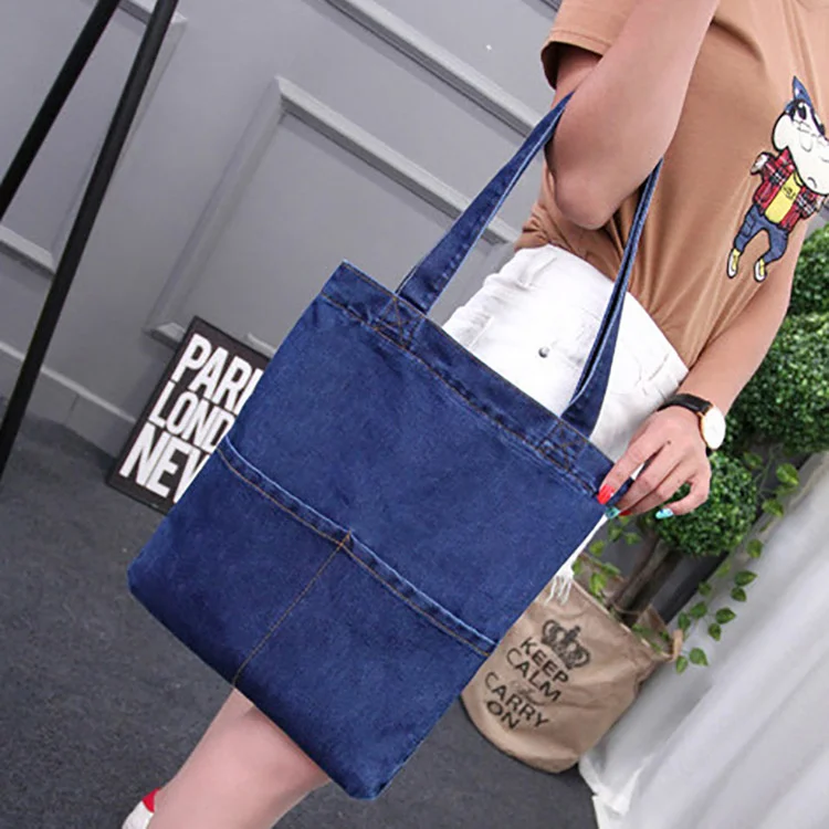 Джинсовая Наплечная Сумка, женская, Большая вместительная сумка для покупок, простая Холщовая Сумка для студентов, сумка-тоут для ночного рынка, эко шоппер