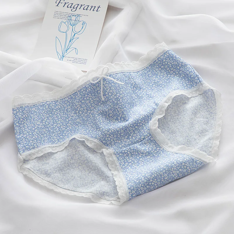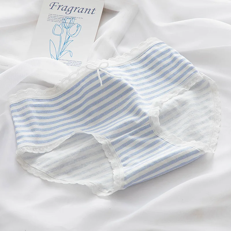 Соблазнительное милое нижнее белье в японском стиле звездного неба, голубого цвета, тонкие женские трусики со средней талией и кружевным бантом, хлопковые трусики с промежностью, трусики в полоску с цветочным рисунком