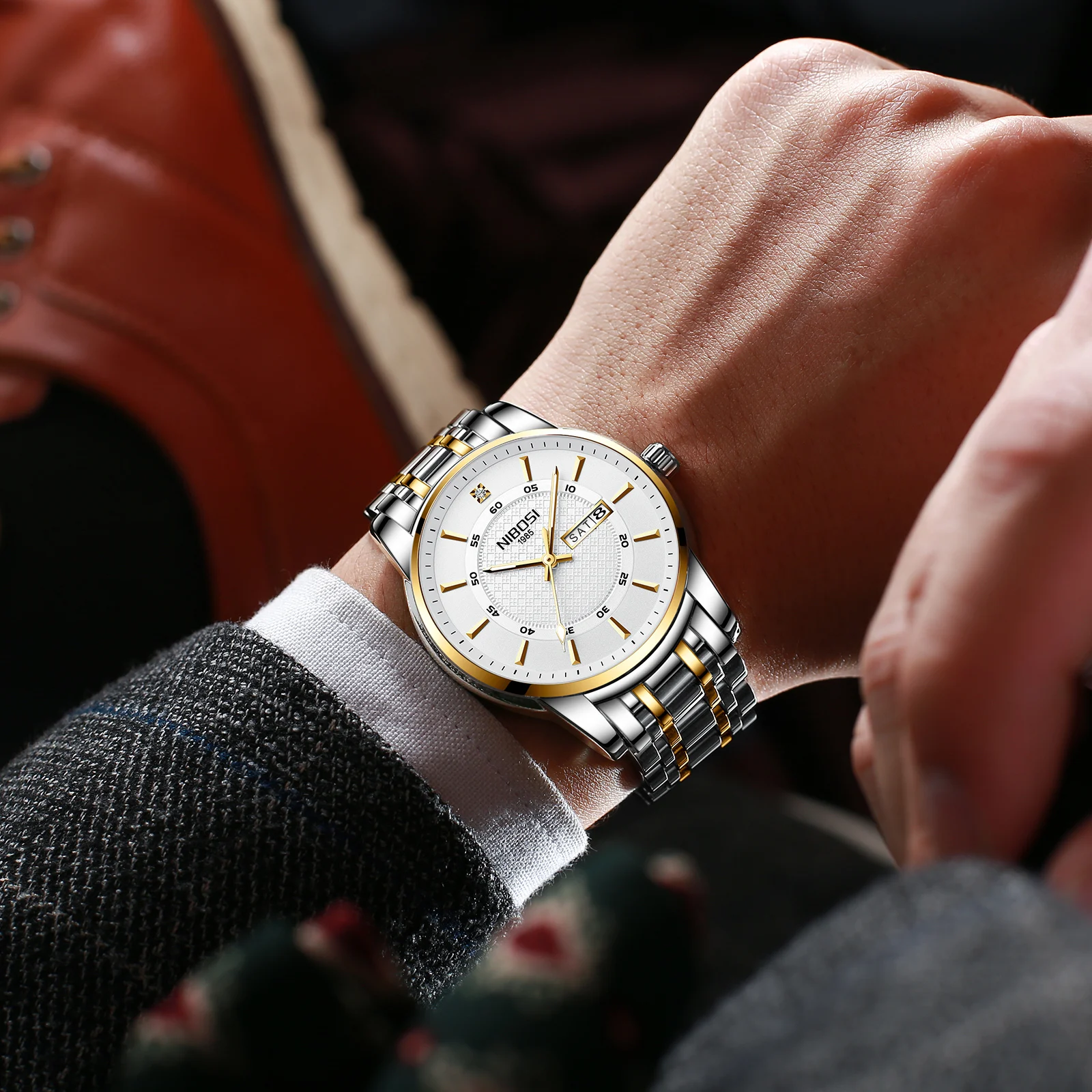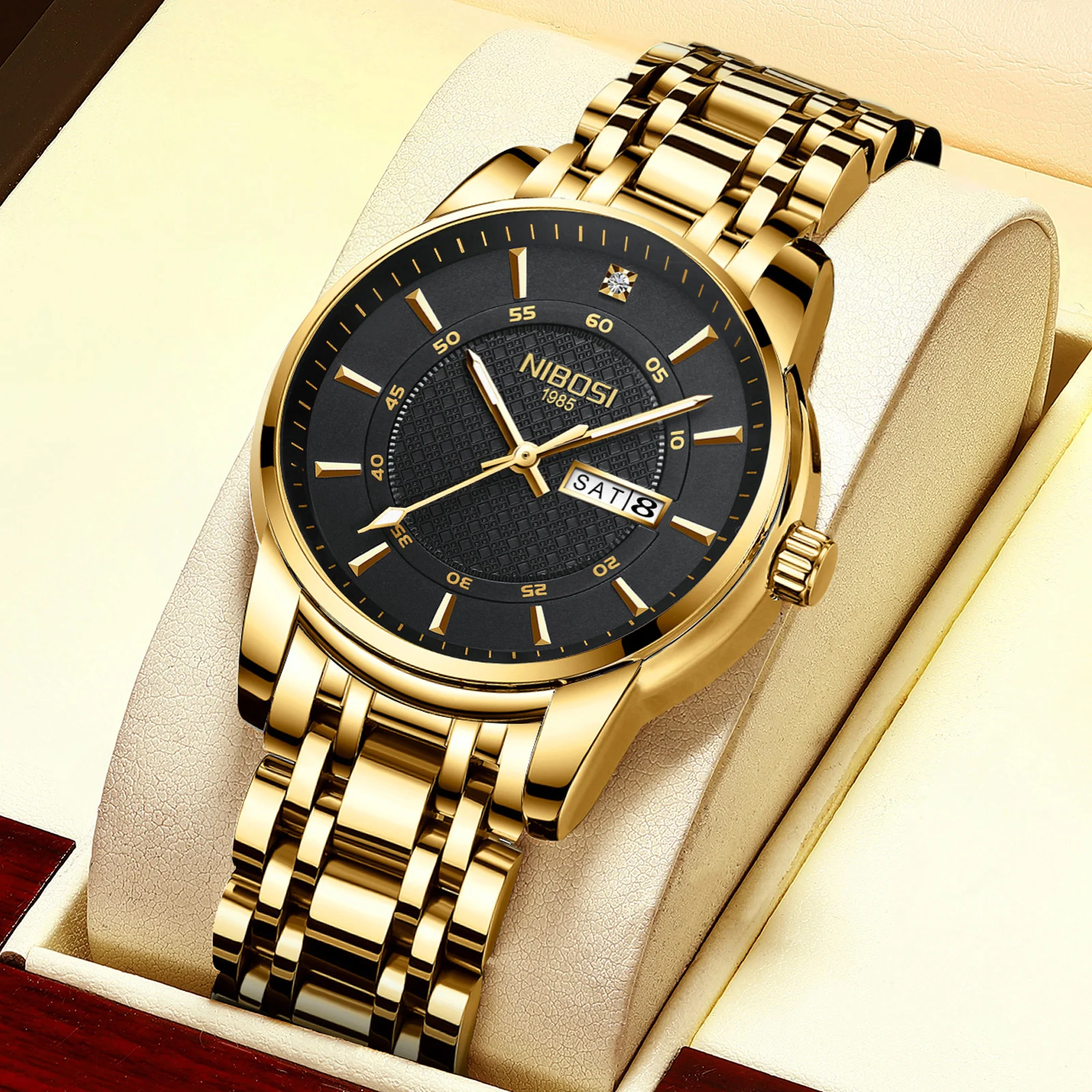Мужские золотые деловые часы NIBOSI, светящиеся водонепроницаемые кварцевые часы, мужские спортивные военные часы 2021 с автоматической датой, мужские часы