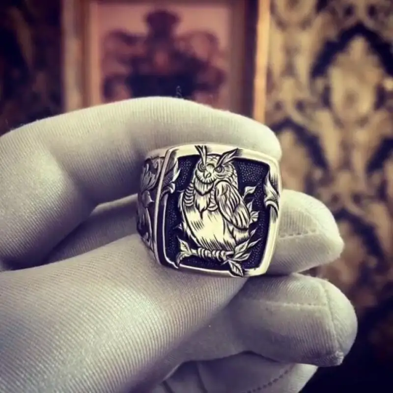 Новый стиль Винтаж Сова печатка из металла панк Мужские кольца Гламур Рок вечерние Байкер ювелирные изделия