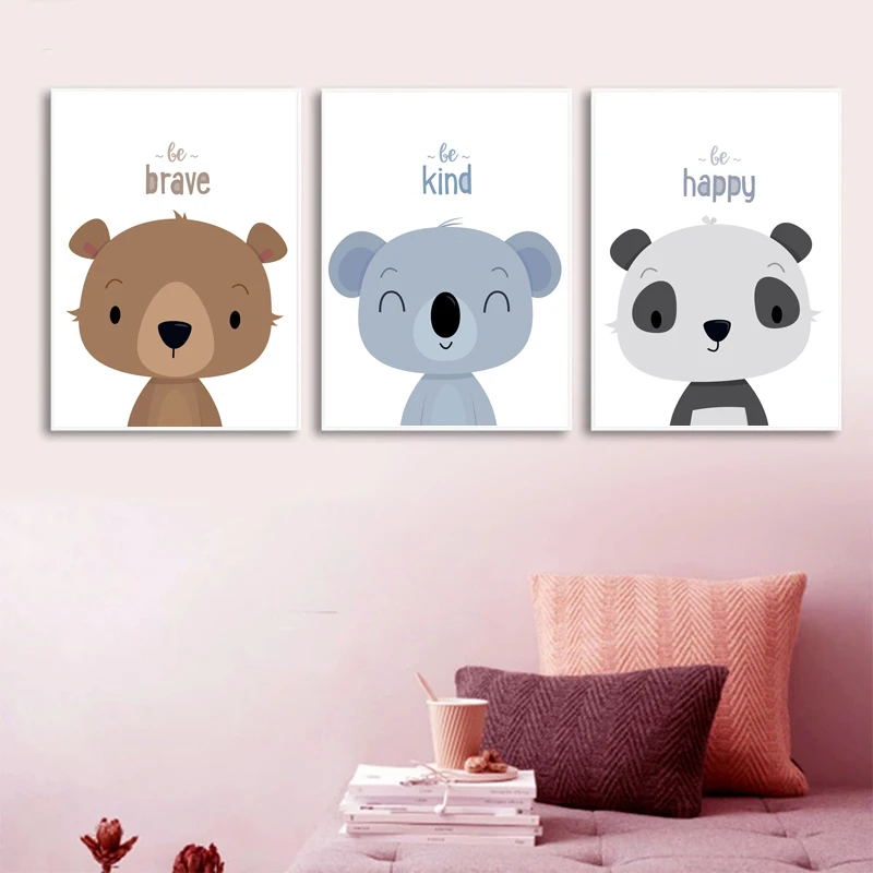 Милые Мультяшные Животные медведь панда настенная Картина на холсте постеры и принты для детской комнаты Настенные картины декор для детской комнаты